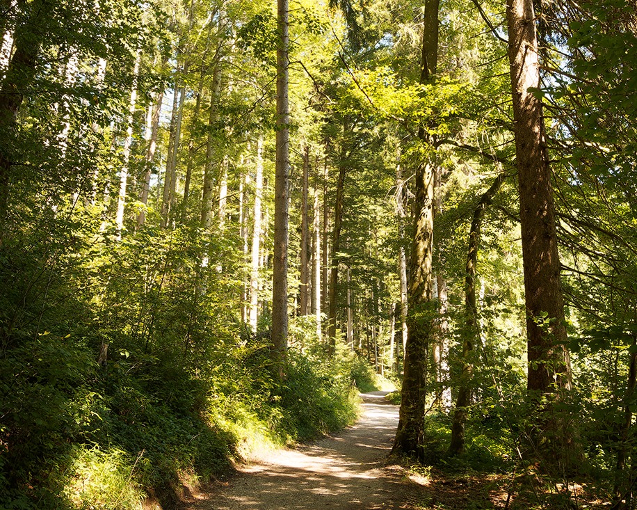 Diese Wanderung hat etwas Meditatives: sie führt vom großen Parkplatz am Kloster Reutberg durch Wiesen, über Lichtungen und schließlich durch den schattigen Dietramszeller Wald mit seinem alten Baumbestand